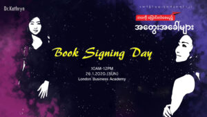 ဘဝကိုပြောင်းလဲစေမည့် အတွေးအခေါ်များ စာအုပ် လက်မှတ်ရေးထိုးပွဲအခမ်းအနားတွင် စာအုပ်များရောင်းချခဲ့ပြီး.. လူငယ်များအတွက် ဘဝတိုးတက်ရေးဆိုင်ရာများဆွေးနွေးပို့ချခဲ့ပါတယ်